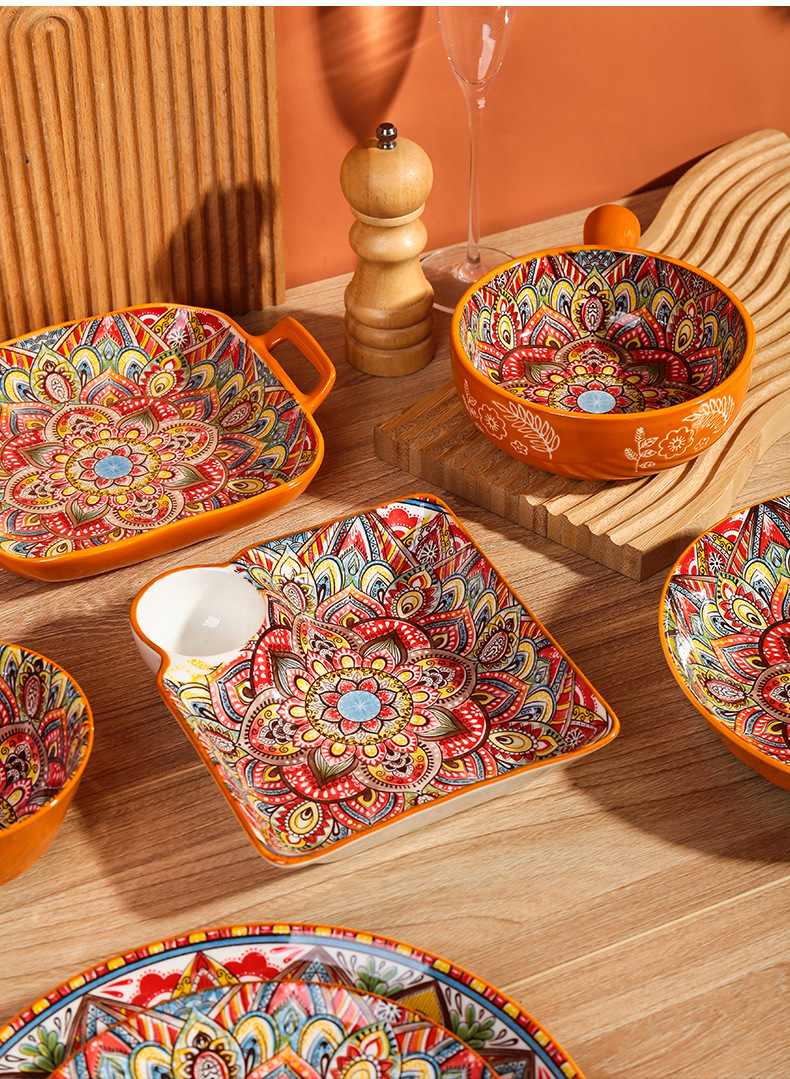 波西米亚网红陶瓷餐具饭碗汤碗手柄盘烤盘厨房酒店用品
