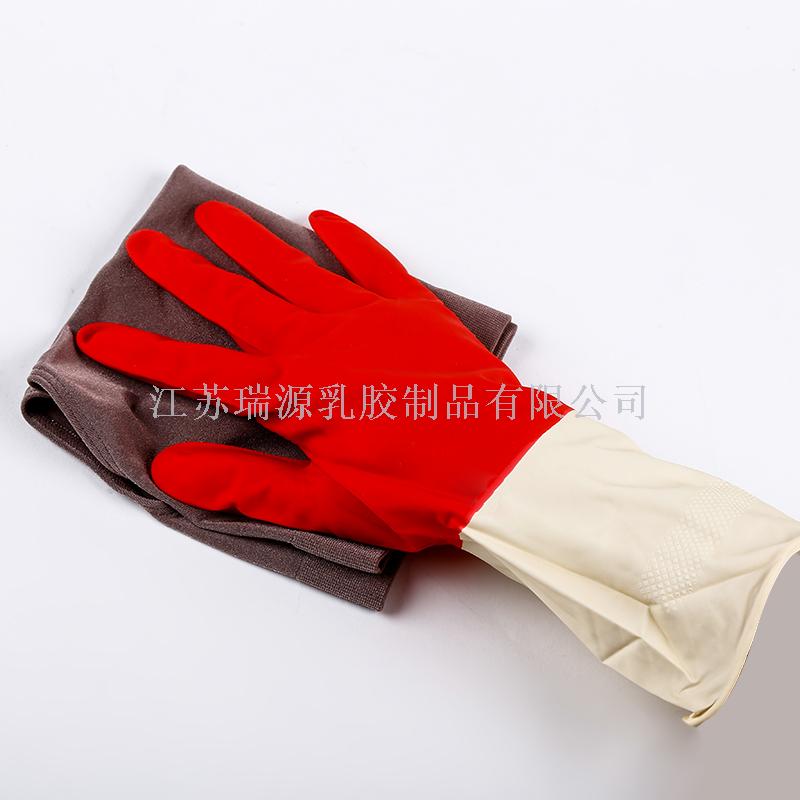乳胶双色手套家用手套洗碗手套耐酸碱手套70克