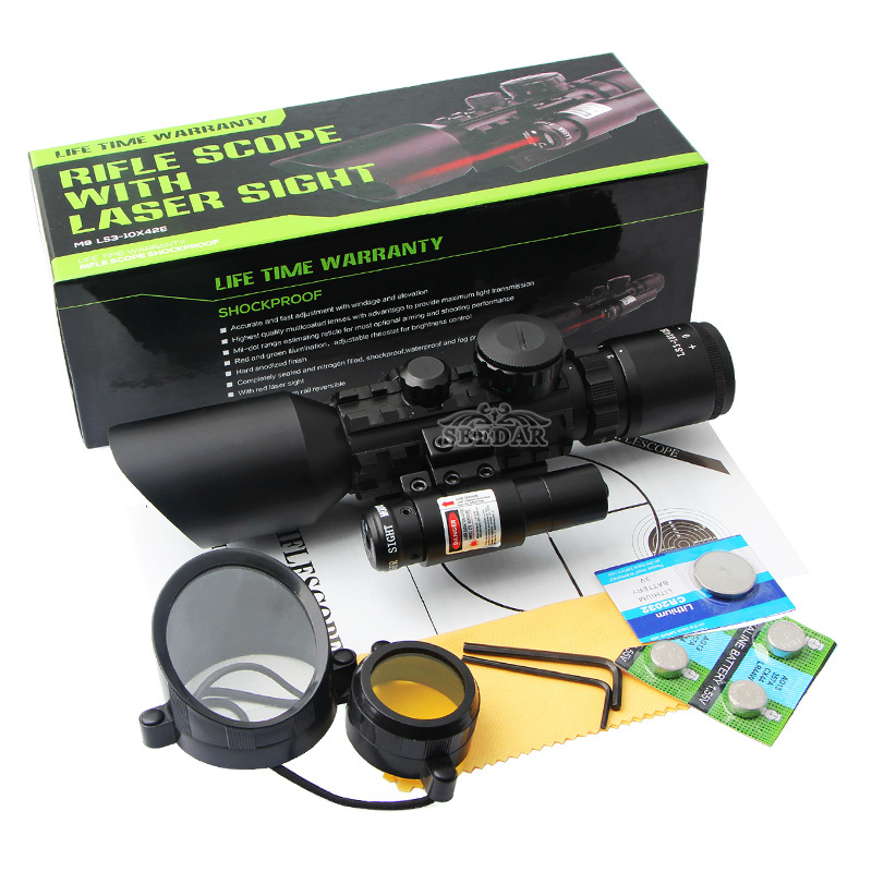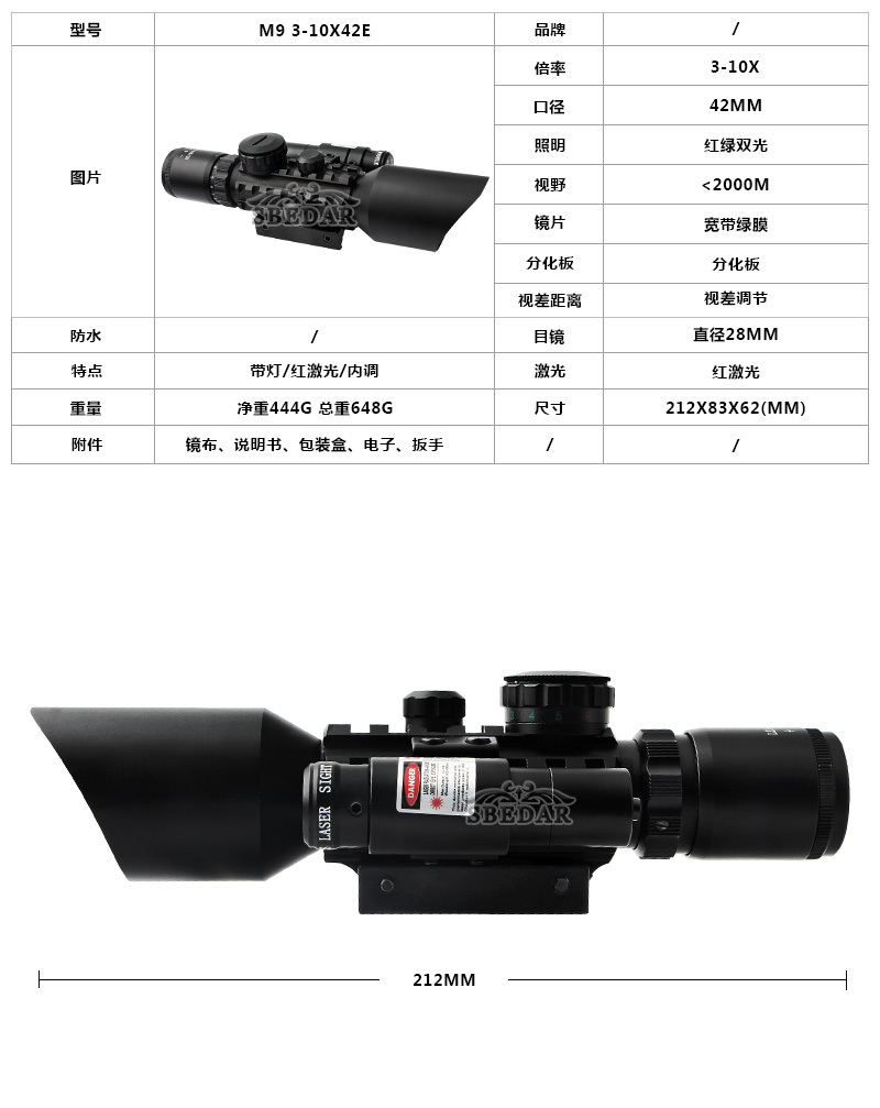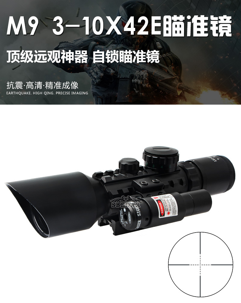 3-10X42E鱼骨红激光瞄一体M9c瞄准镜专卖