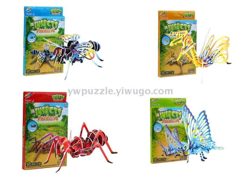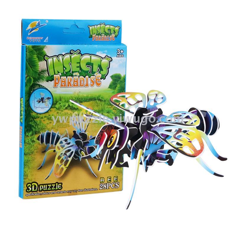 DIY儿童益智拼图蜜蜂拼装模型玩具促销品产品名称:昆虫包装方式:彩盒装箱数量:480盒包装规格:11*1.8*17.5CM