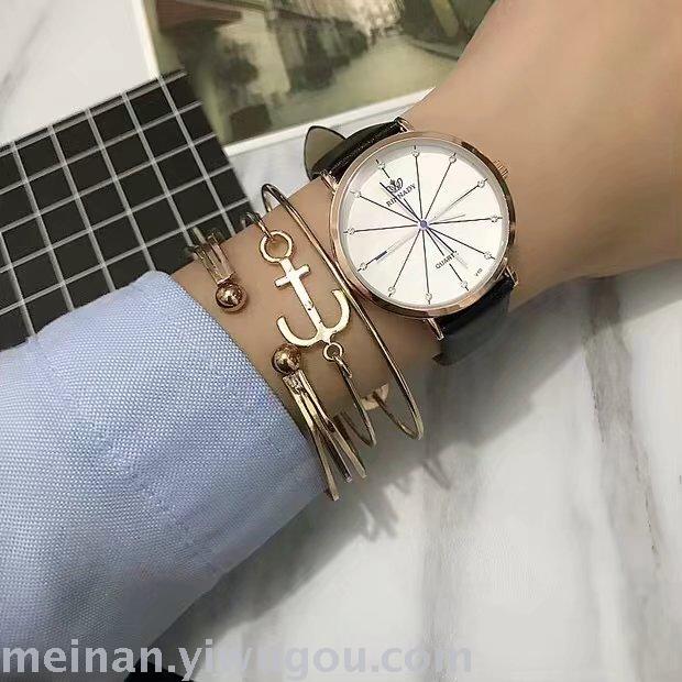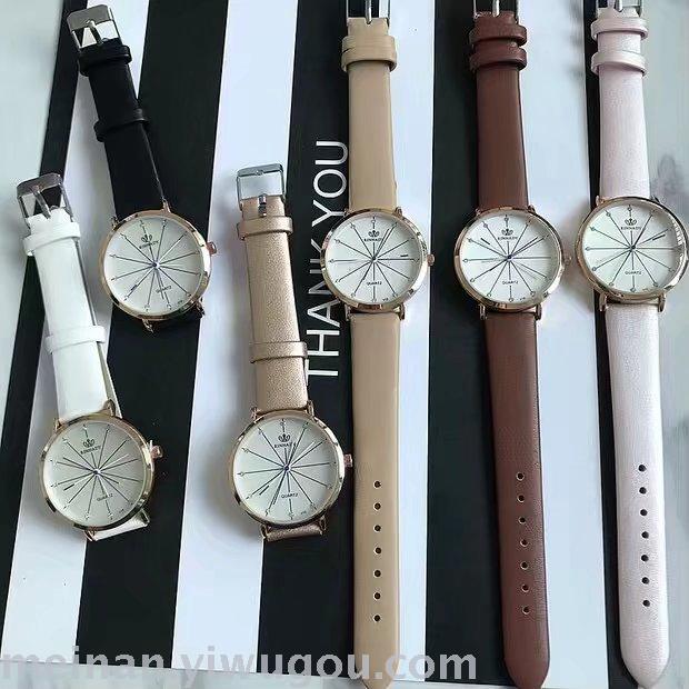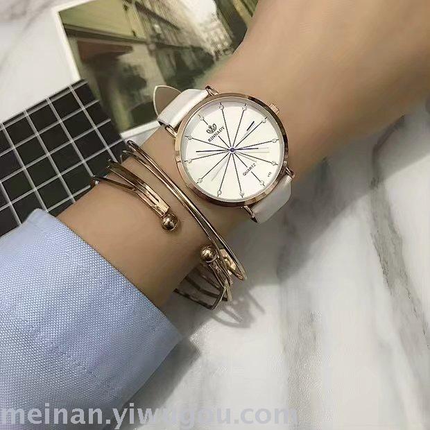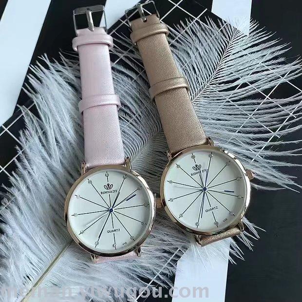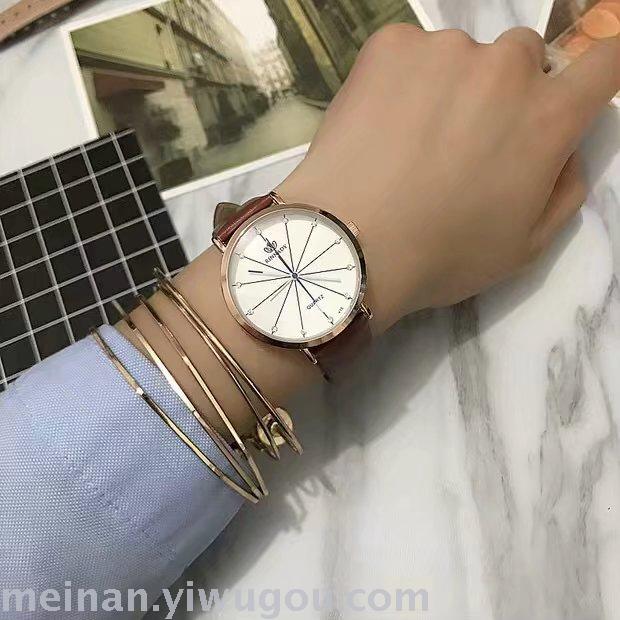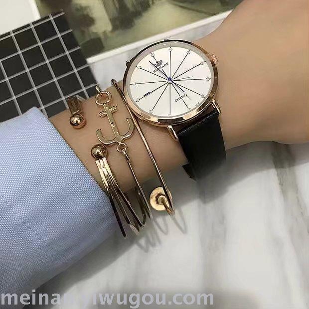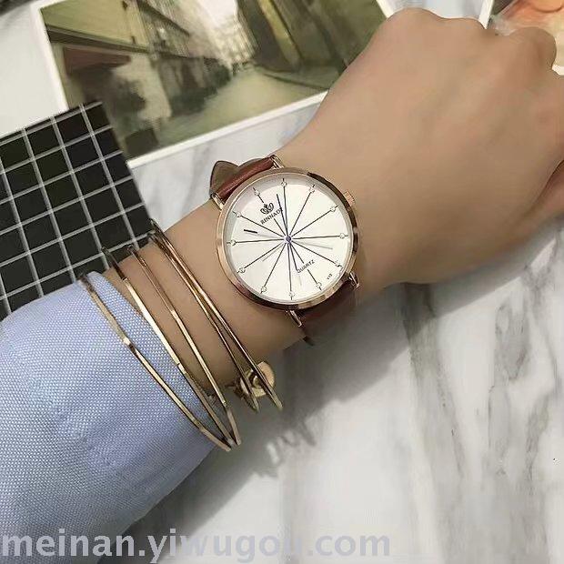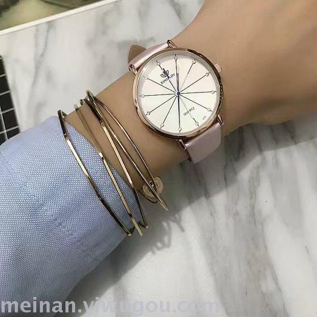 新款条纹个性超薄表盘长针女士学生手表