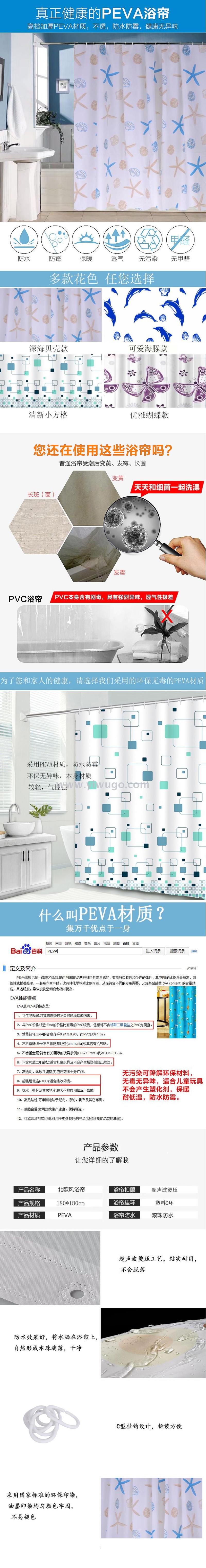 塑料 环保 卫浴 浴室 带12个挂钩 浴帘