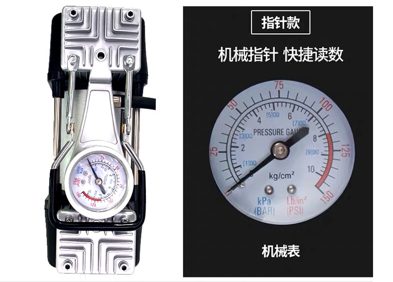 5 、一般轮胎在充气时,约在 3-5 分钟既可到达 30PSI 正常胎压,大轮胎则会更长一点时间;如开始充气时仪表之指针快速上升到50—100PSI,则表示空气受到阻塞,空气没有进入轮胎,此时需立即拔下气咀接头,重新操作,否则马达及仪表容易损坏。
