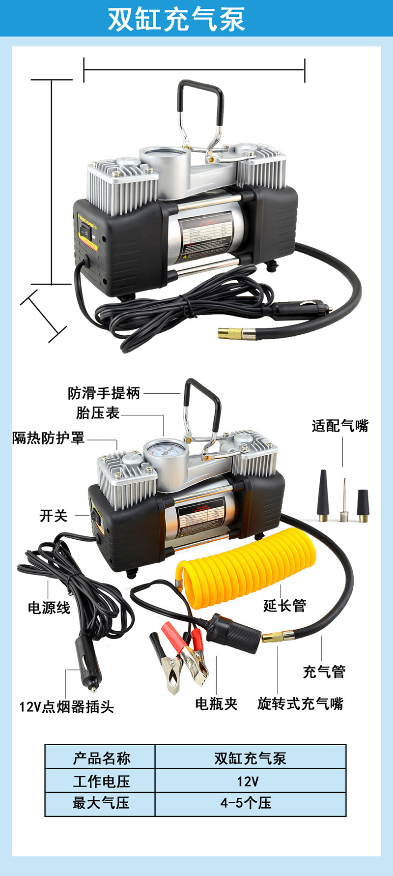 厂家直供汽车打气泵双缸轮胎充气泵大功率电动充气泵 车载充气泵