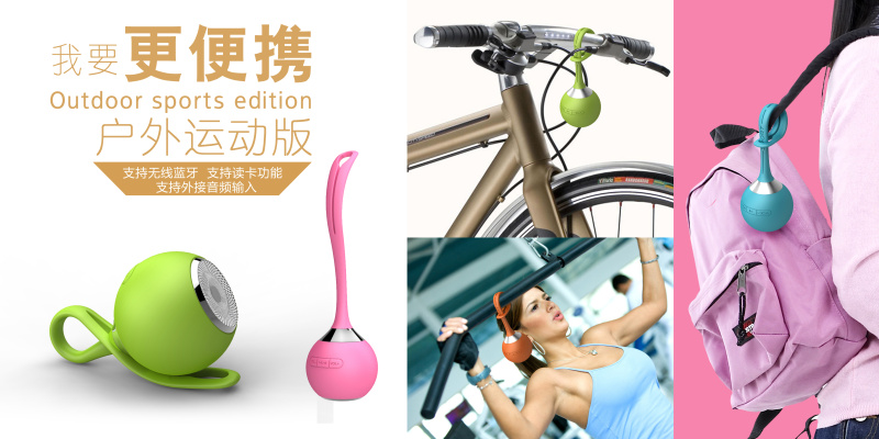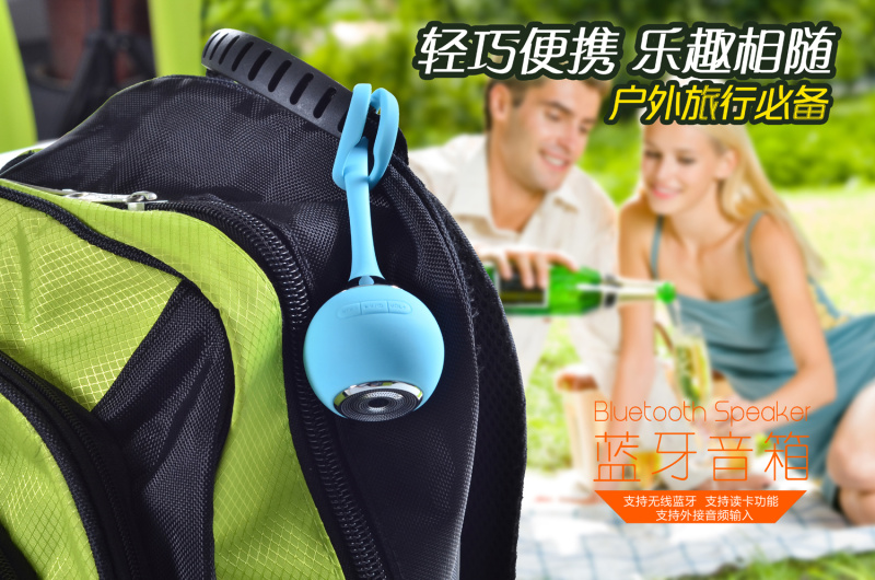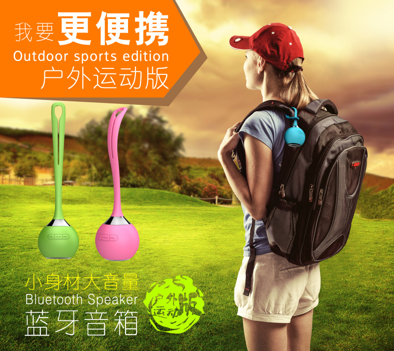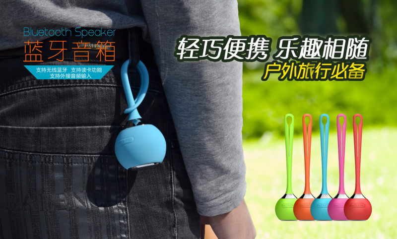 1.时尚的设计,硅胶材质,手感柔和,小巧便携,户外运动防水音箱.
