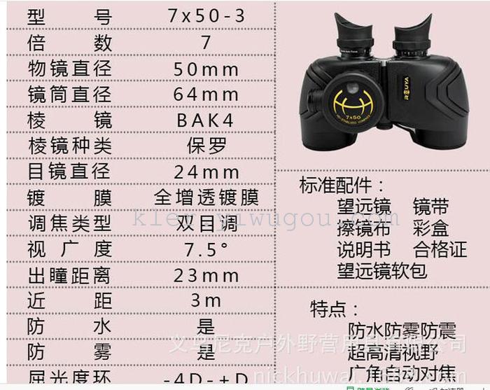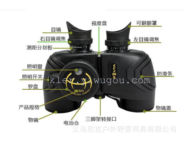 7X50夜视电子指南针双筒高清望远镜