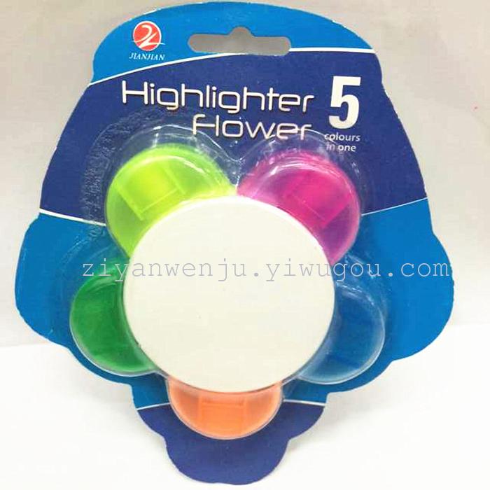 单支吸卡五色花瓣荧光笔