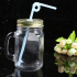 带盖玻璃杯玻璃水杯透明饮料杯带吸管杯密封玻璃瓶 BS-2