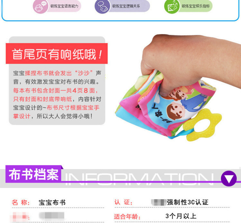 婴儿益智布书批发 0-1-2岁宝宝布书 早教玩具