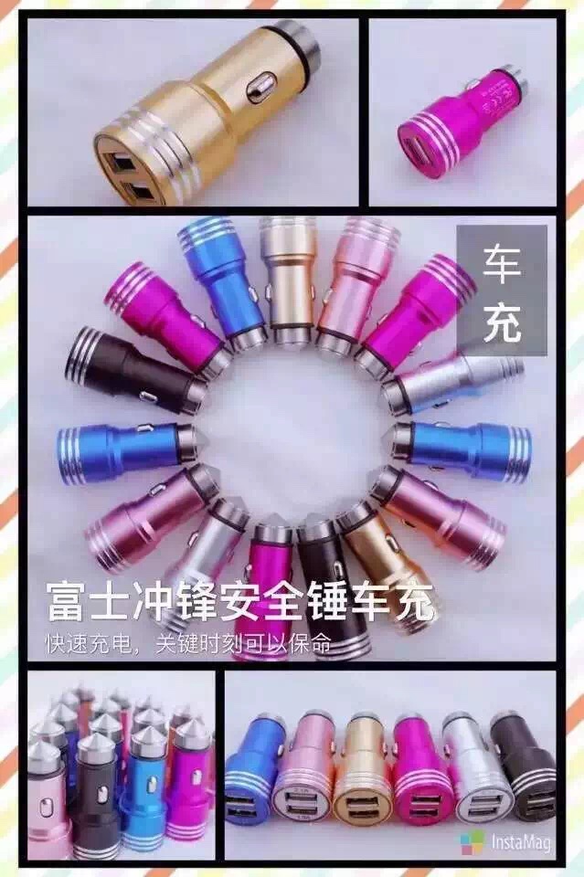 车载手机充电器 安全锤式全金属2.1A双USB多功能通用车充