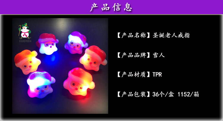 发光TPR夜光戒指 圣诞节发光戒指 圣诞老人闪光指环 装饰品