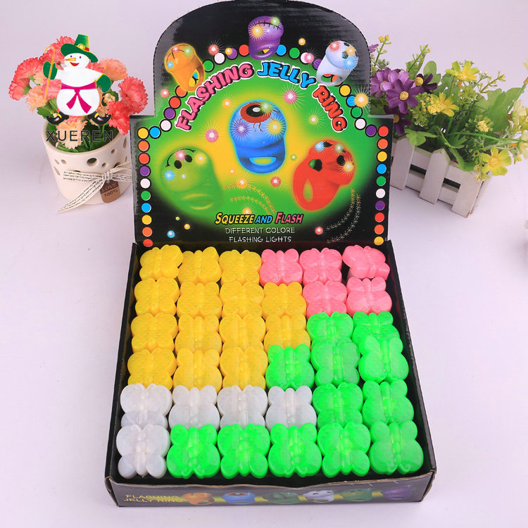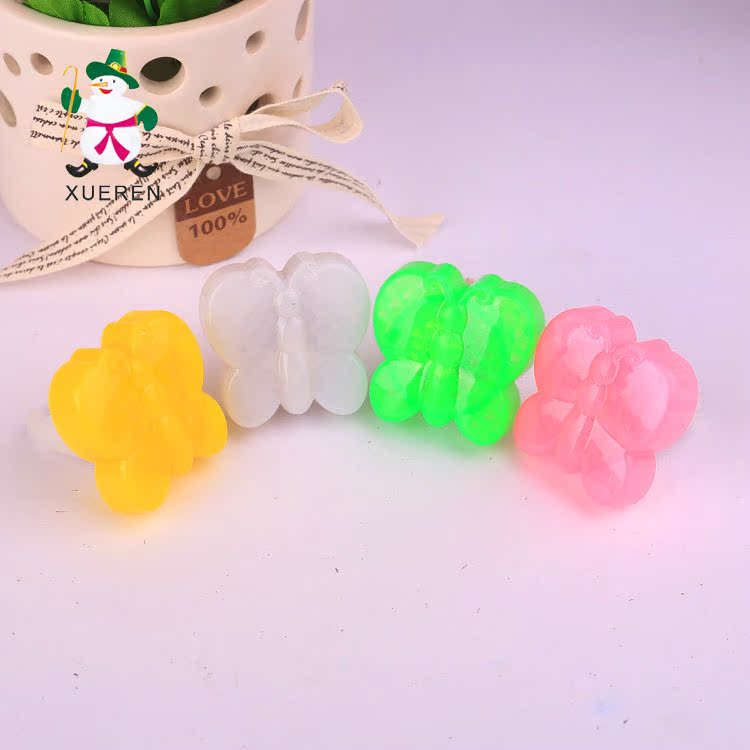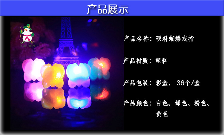 新款创意硬料蝴蝶戒指 LED电子七彩闪光指环 酒吧荧光戒指