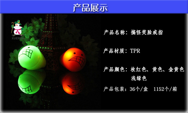 玩具 彩色创意搞怪笑脸发光戒指 时尚七彩闪光指环 地摊货源