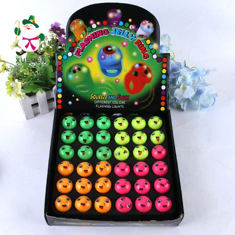 冬超 新款创意可爱笑脸发光戒指 可爱闪光指环 酒吧荧光戒指