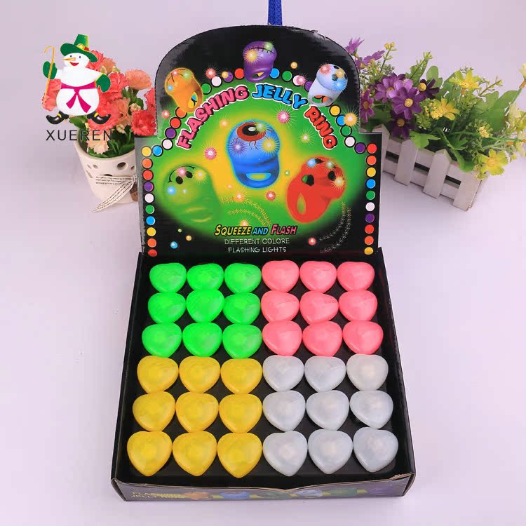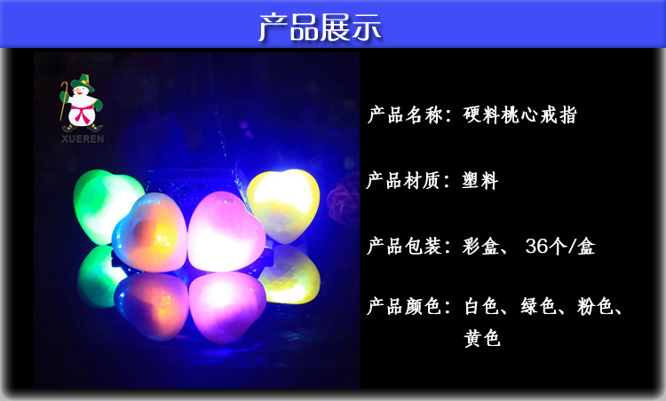 发光新奇特桃心戒指 七彩变色闪光指环 酒吧夜光戒指 地摊热卖