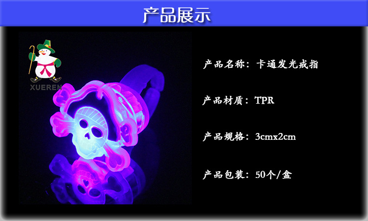 冬超玩具 万圣节彩色卡通创意发光戒指 儿童七彩闪光指环 节日