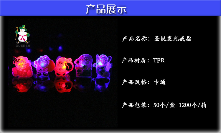 儿童玩具 卡通发光戒指 LED儿童创意圣诞节彩色闪光指环批发