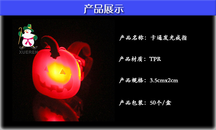 冬超玩具 万圣节彩色卡通创意发光戒指 儿童七彩闪光指环 节日