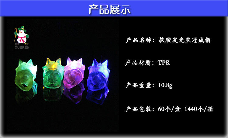 热卖闪光软胶皇冠 发光戒指 夜市 地摊货源 发光玩具厂家批发