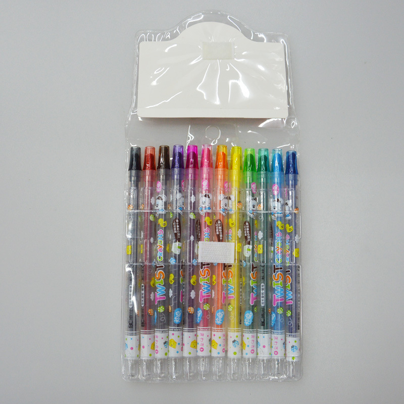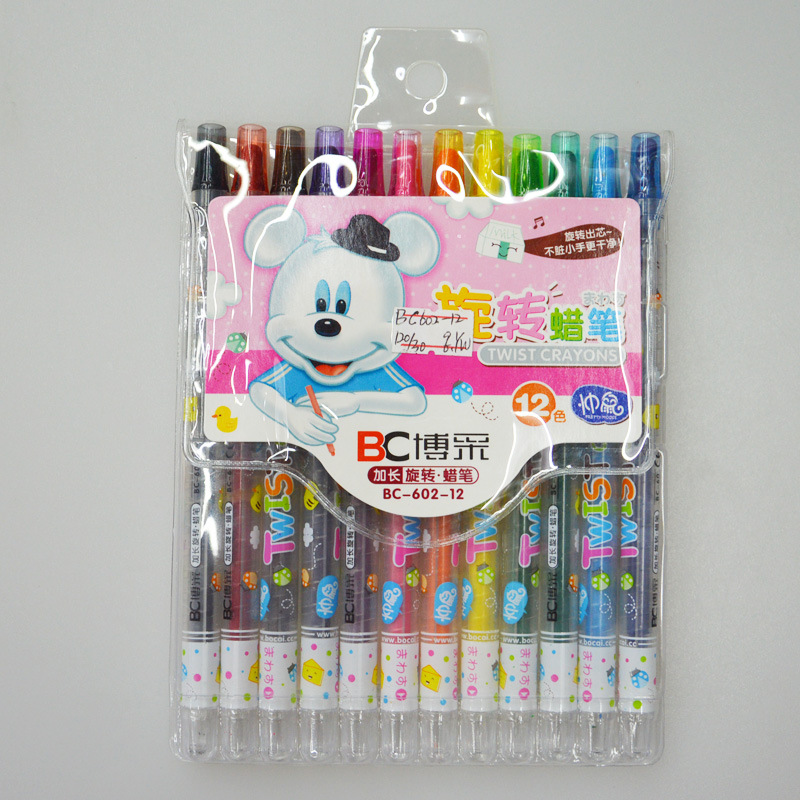 12色旋转蜡笔美术用品加长旋转蜡笔学生文具用品批发