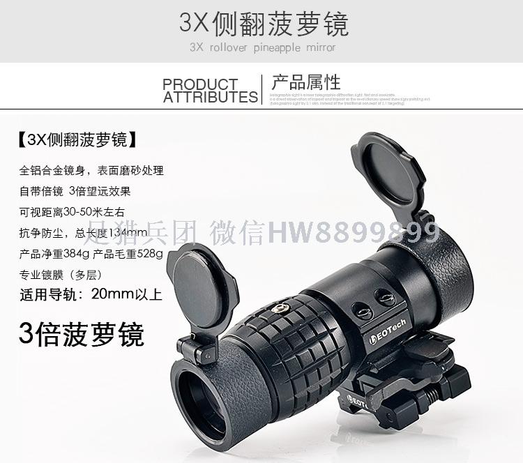 金属301快拆侧翻增倍镜 菠萝镜 全息瞄倍镜 三倍镜 增倍镜 侧翻