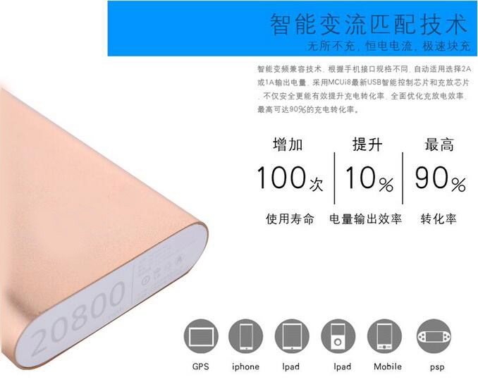 小米移动电源20800毫安8节电芯大容量充电宝双手机平板通用