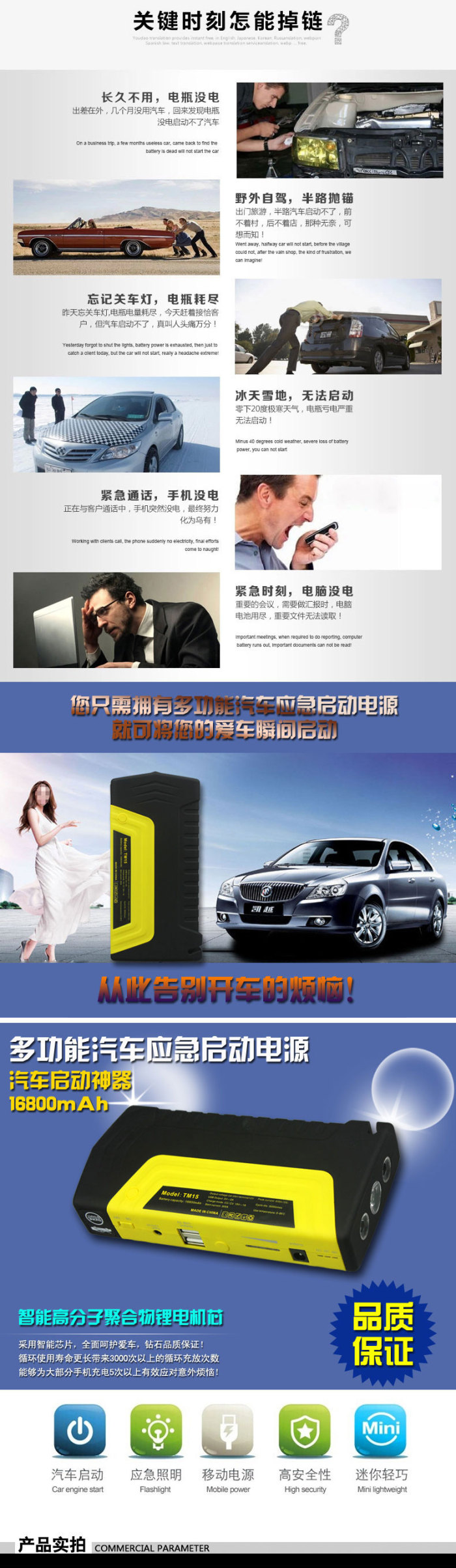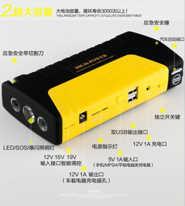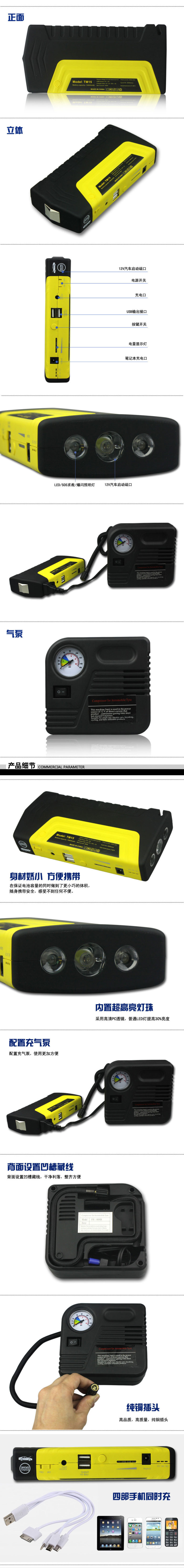 汽车载应急启动电源12V移动电源车用电瓶打气泵双USB三灯
