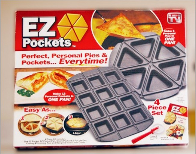 Make perfect, personal pies and pockets every time with EZ Pockets! Just place the dough in the EZ Pockets pie pan, fill with you favorite sweet or savory recipe, cover with top dough, seal, trim and bake. Enjoy delicious, personal pies in minutes, perfect for snack time, deserts, kid’s lunches even dinner. From sweet treats to meal time favorites, EZ Pockets as seen on TV, does it all.