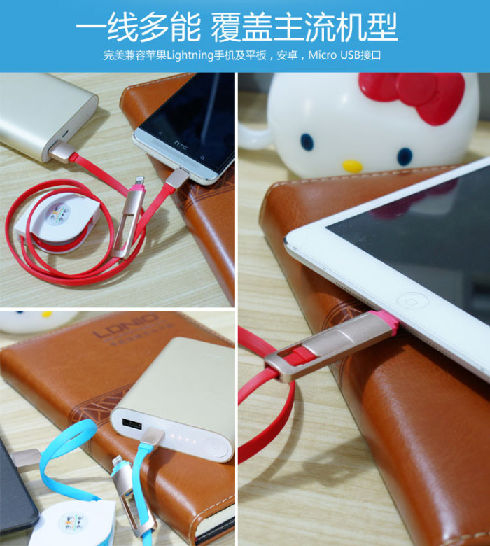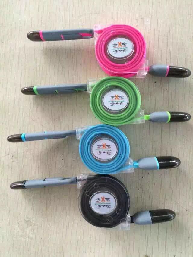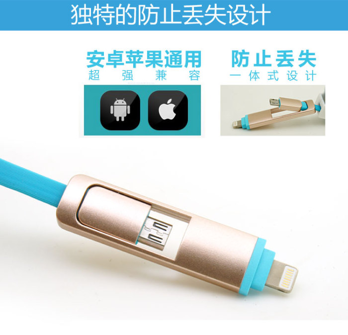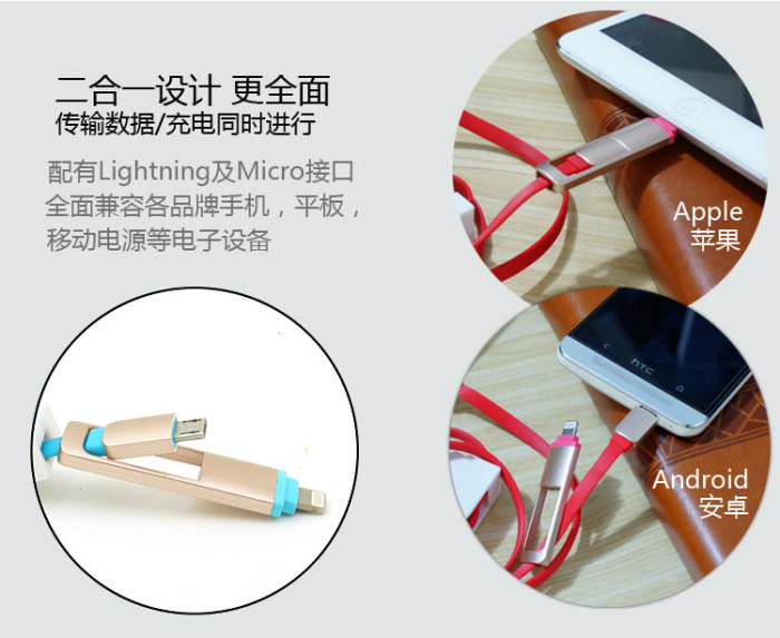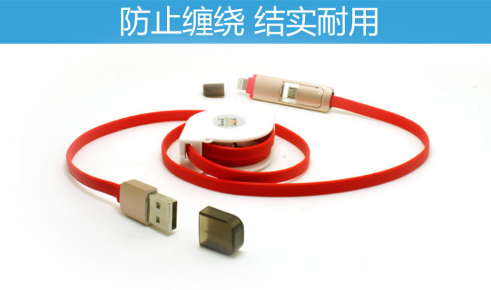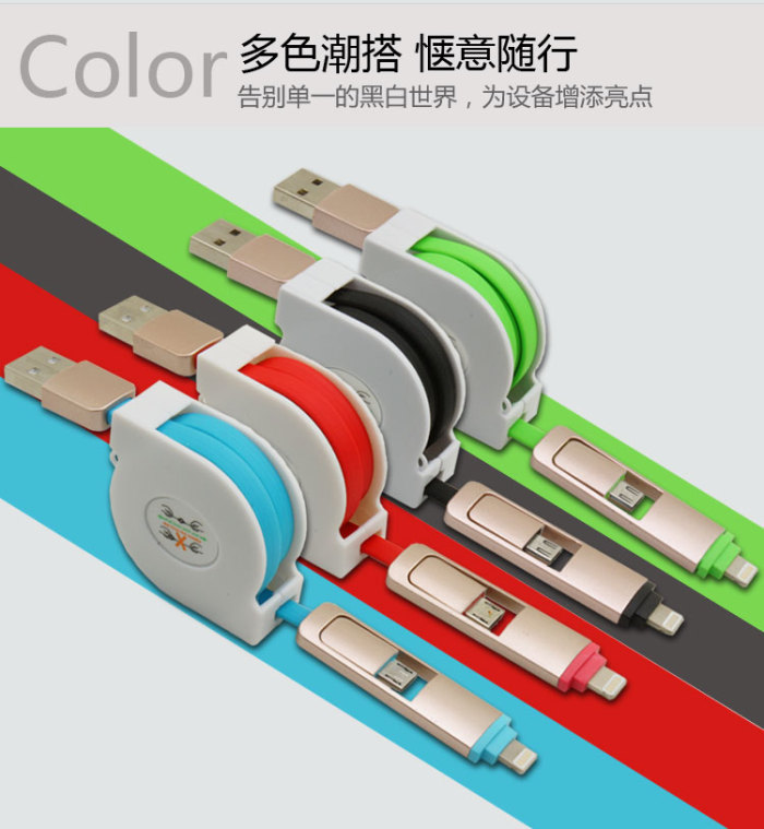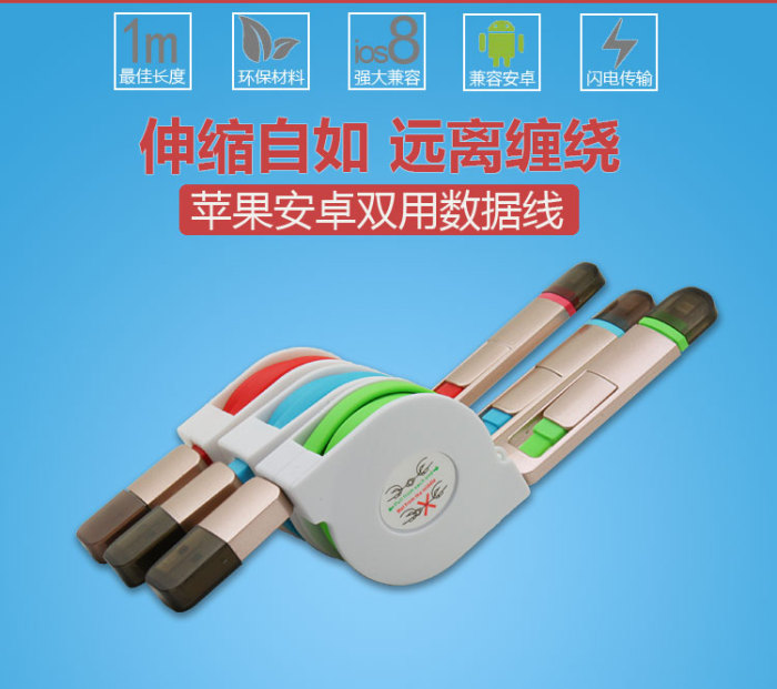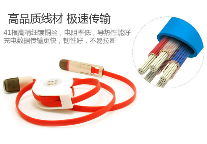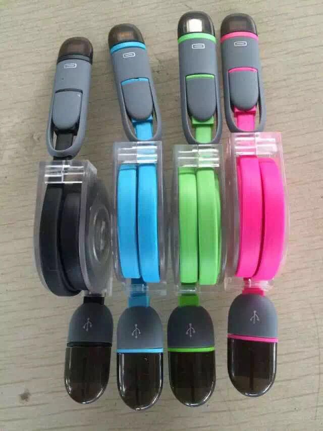 二合一快速充电线2A伸缩USB线 智能手机通用一拖二数据线