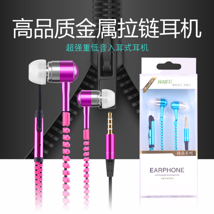 金属耳塞电脑手机线控通用耳麦入耳式重低音运动拉链耳机手机配件