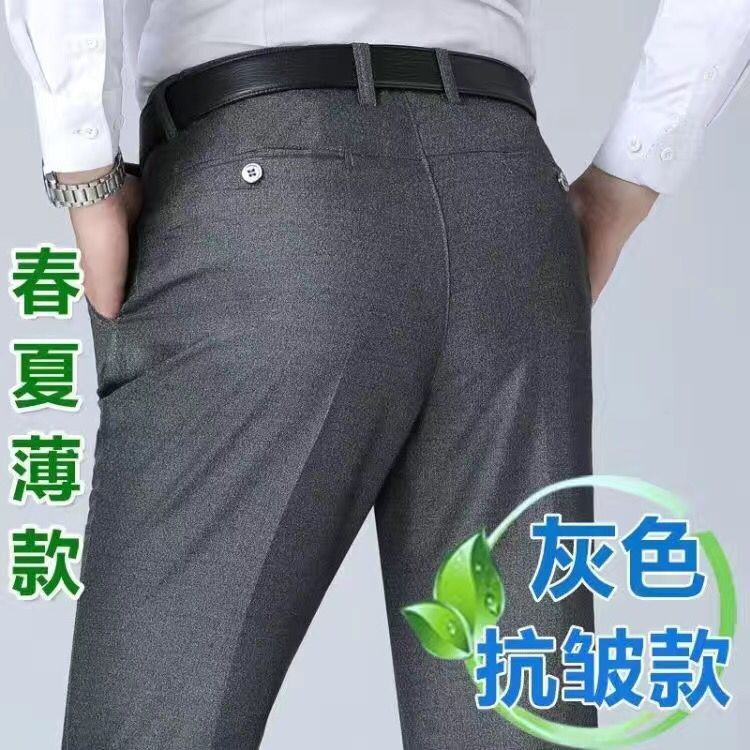 spring and autumn men‘s suit pants formal wear thin non-ironing business casual men‘s pants loose large size high waist suit pants wholesale