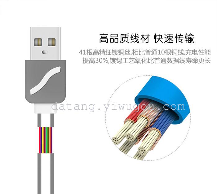 材质;TPE环保材料(2芯80支铜丝可快速充电)
