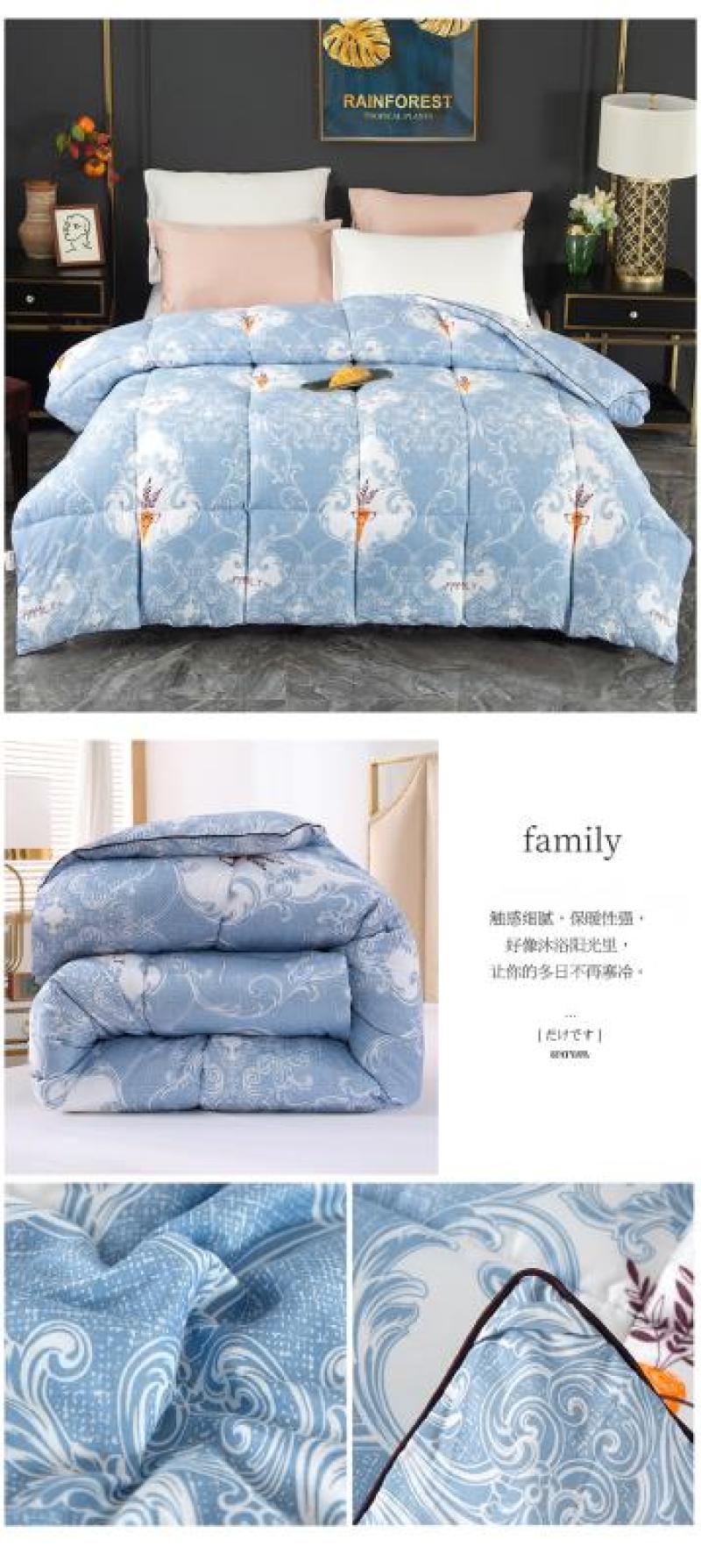 产品名称:蓝条羽丝绒冬被(拍下时请注明花色和尺寸)