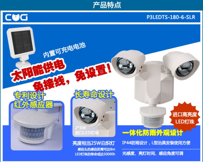 外贸专供日本款LED太阳能红外感应灯庭院灯车库灯6W日本CREE灯