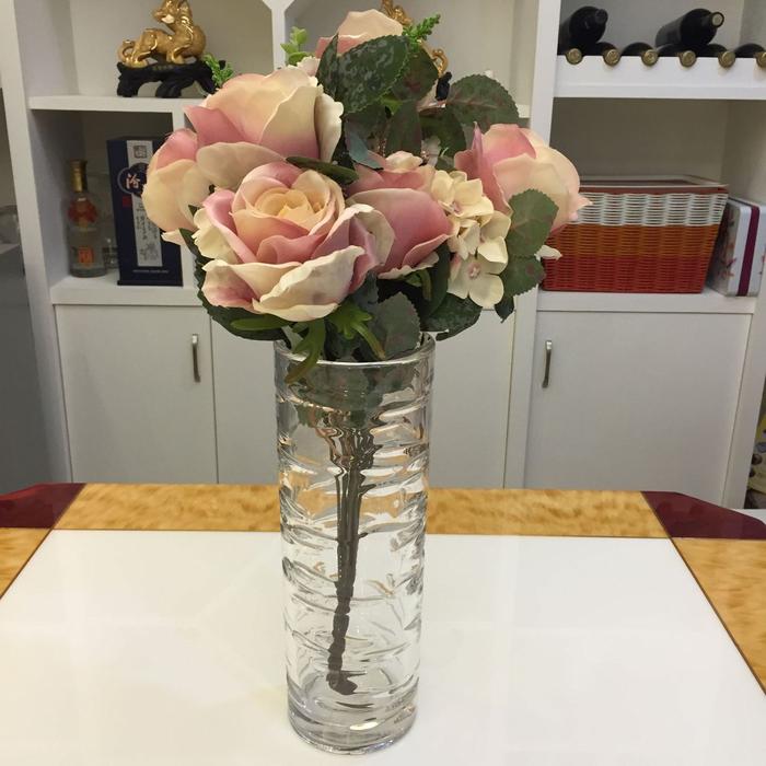 欧式简约时尚玻璃透明花瓶 台面花瓶 百合 玫瑰花