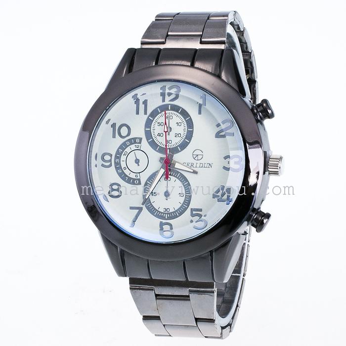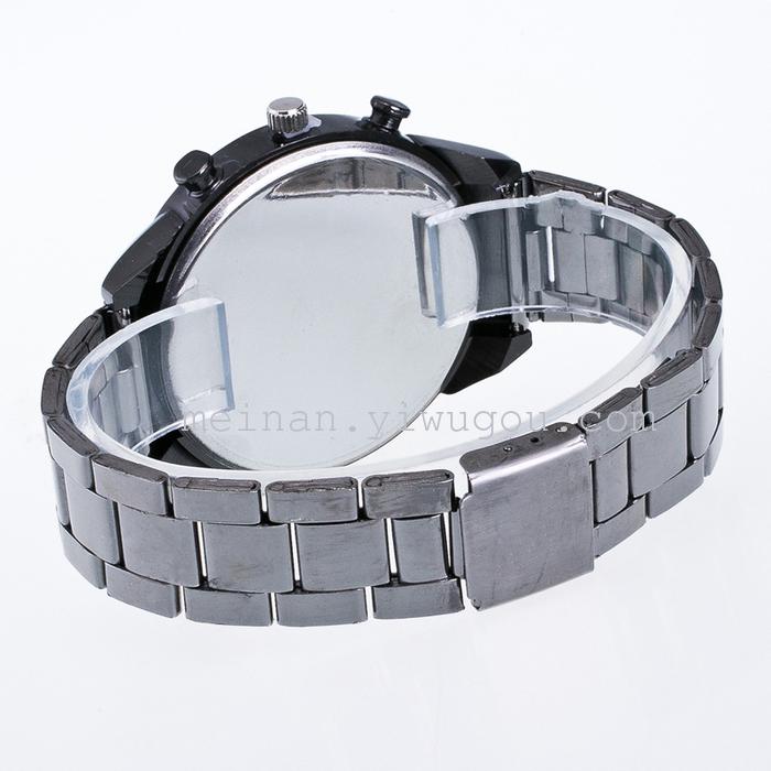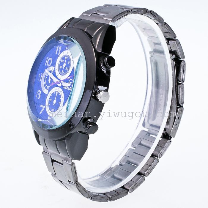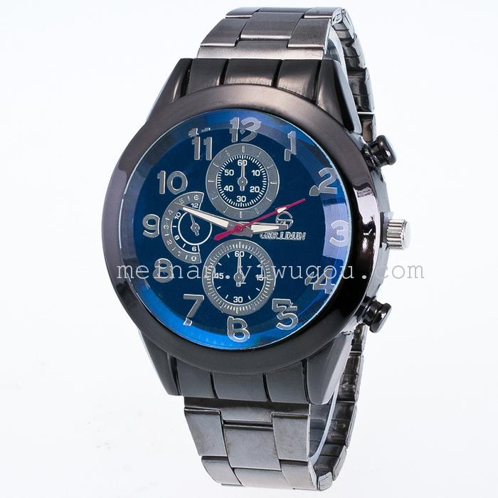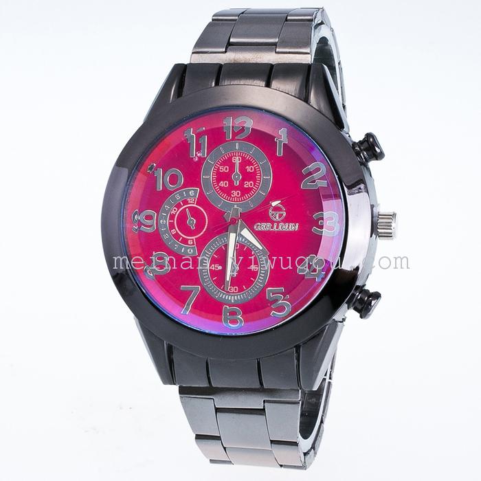 彩色钢带表商务休闲数字面蓝光玻璃男表