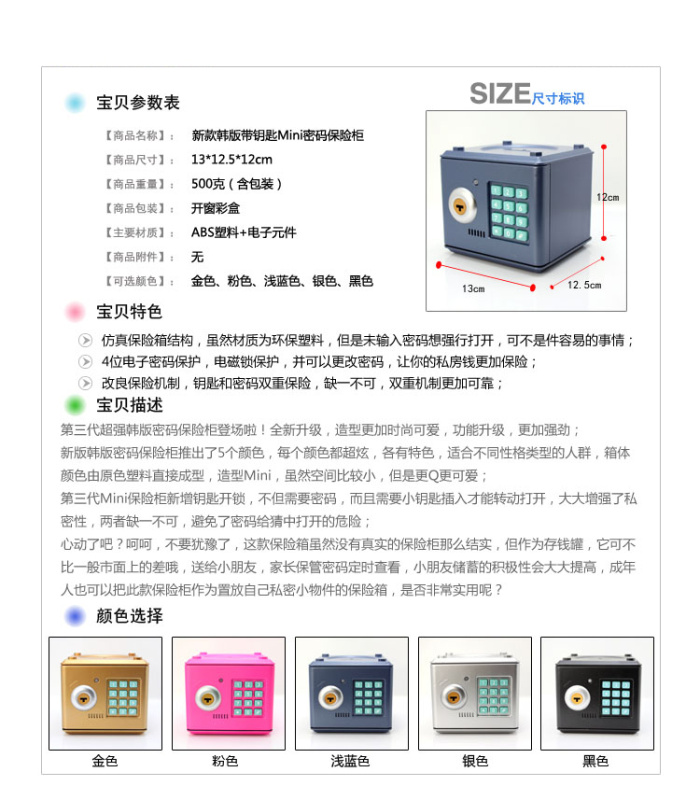 创意学生可爱小号密码箱时尚储物盒带钥匙存钱罐储蓄