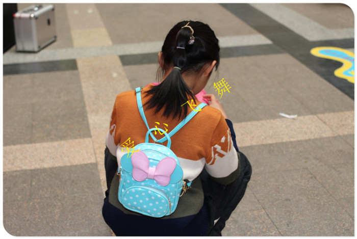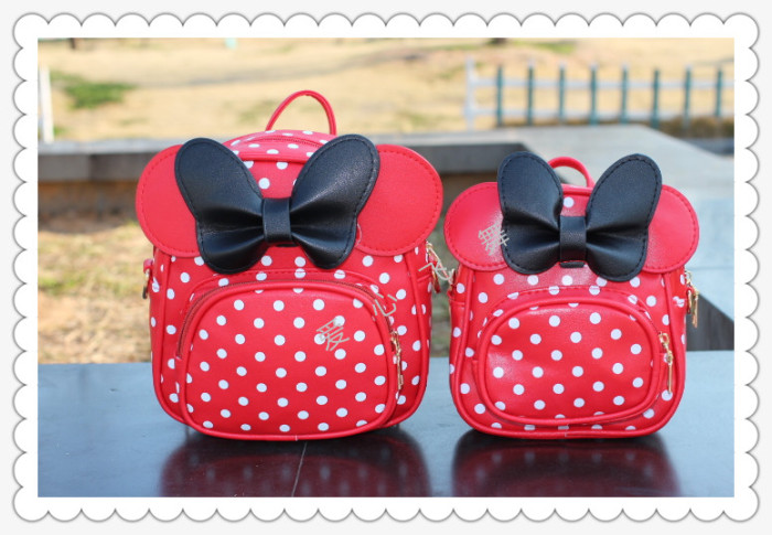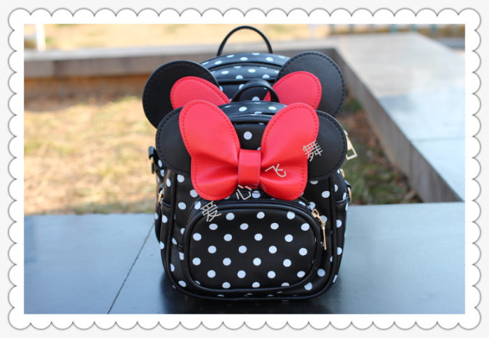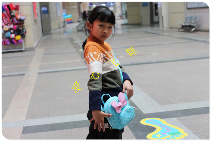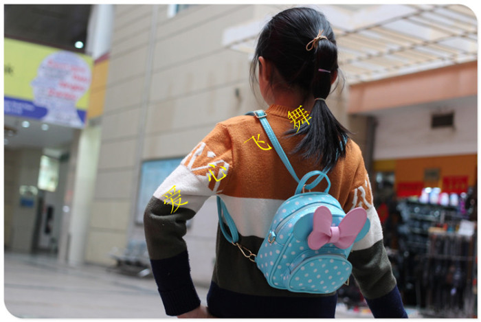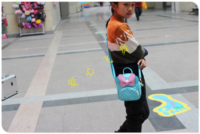 爱心飞舞 儿童背包波点KT双肩包斜挎包手拎包PU三用包