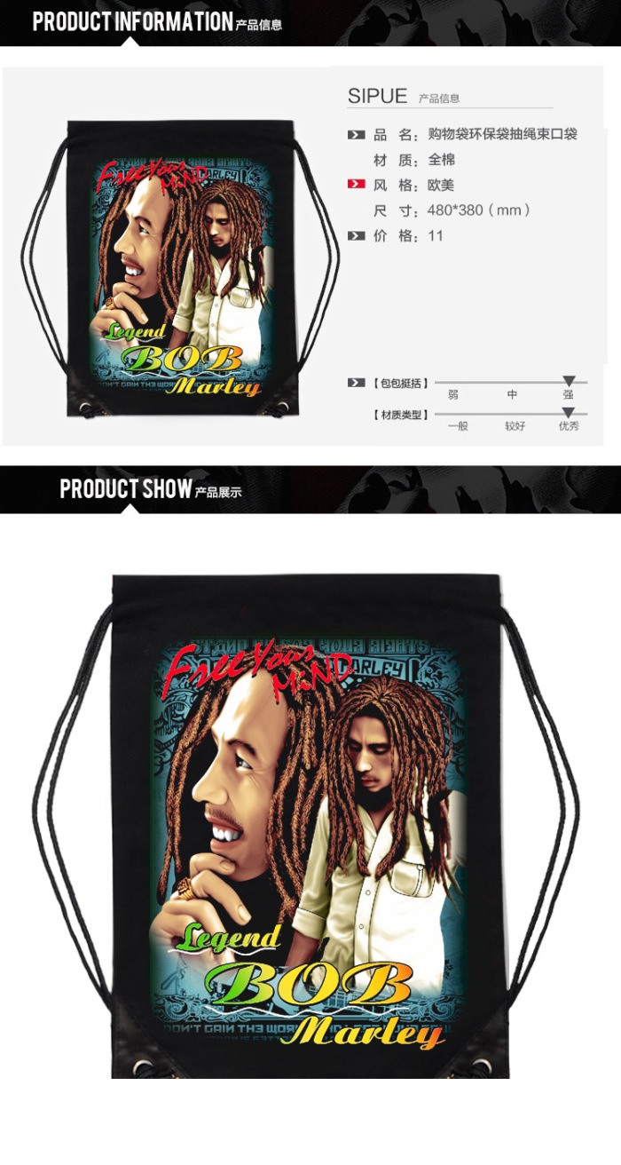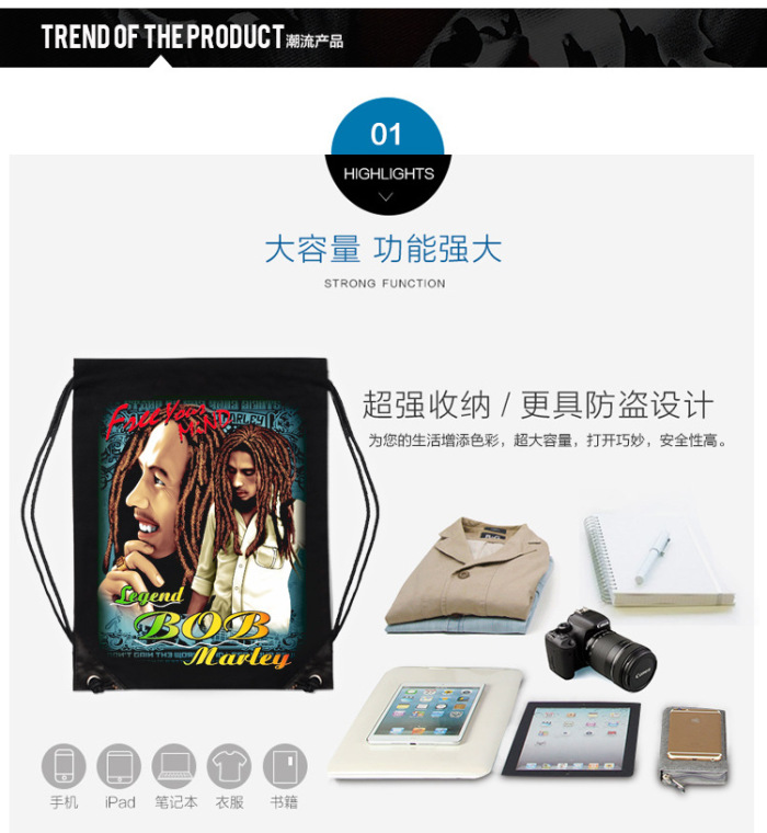 时尚潮酷BOB MARLEY束口袋男女通用背袋 抽绳袋双肩包