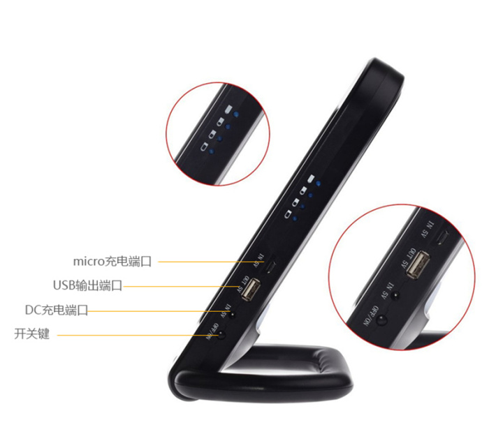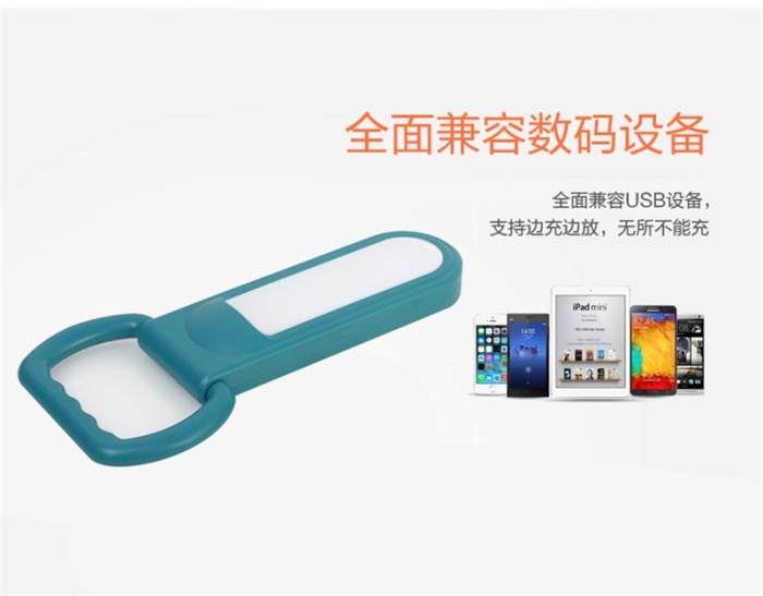 利用匹配的数据线,一端插入本产品的USB输出口,另一端插入手机、相机等设备,即可进行充电。为其它设备充电时,侧面的蓝色LED闪烁,用以指示充电状态及电量。当外接设备充满电或者取消连接时,约10秒后LED自动熄灭。