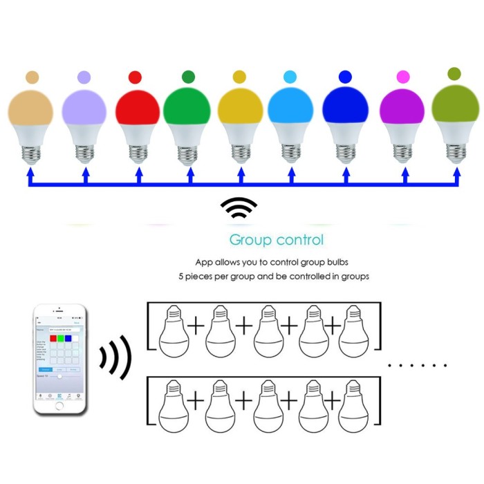 采用铝鳍片可以让空气循环回流。这个设计解决了高功率LED的散热问题。灯泡外罩发光很均匀。通过蓝牙控制,遥控距离是40米。低功率,抗干扰性强.可以记住关灯前的一个模式(当重启时,灯显示的效果是上一次最后关闭的那个灯效果).另外,每次启动灯泡,都为开的状态。该功能可以让您即使没有手机也能随时打开灯泡