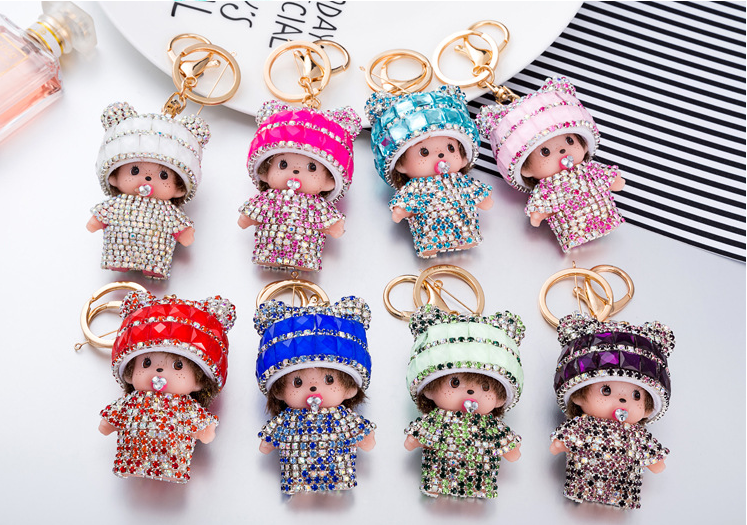 贴钻奶嘴娃娃钥匙扣满钻 熊猫蒙奇奇钥匙扣包包挂