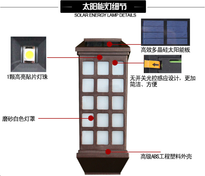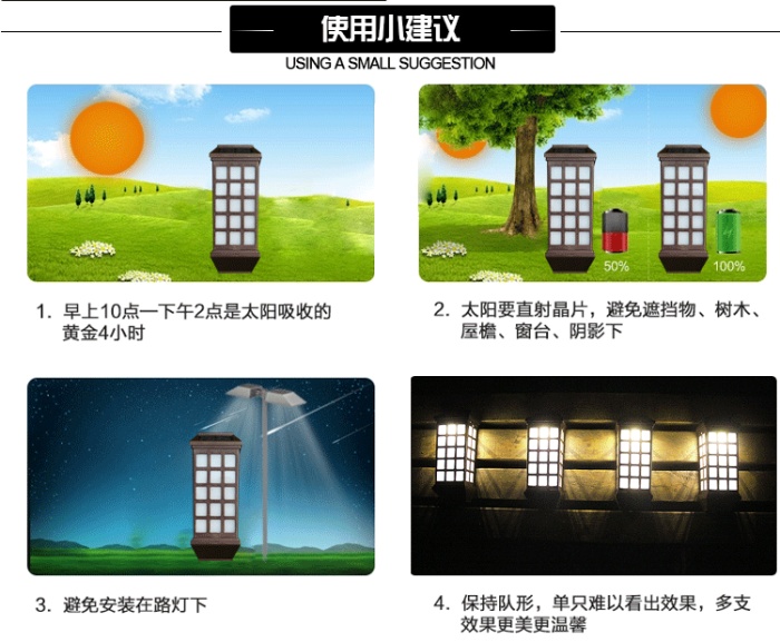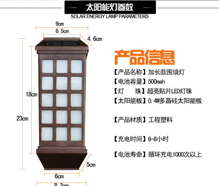 1.太阳能板:0.2w多晶硅 2.亮灯时间:可持续照明8小时左右
