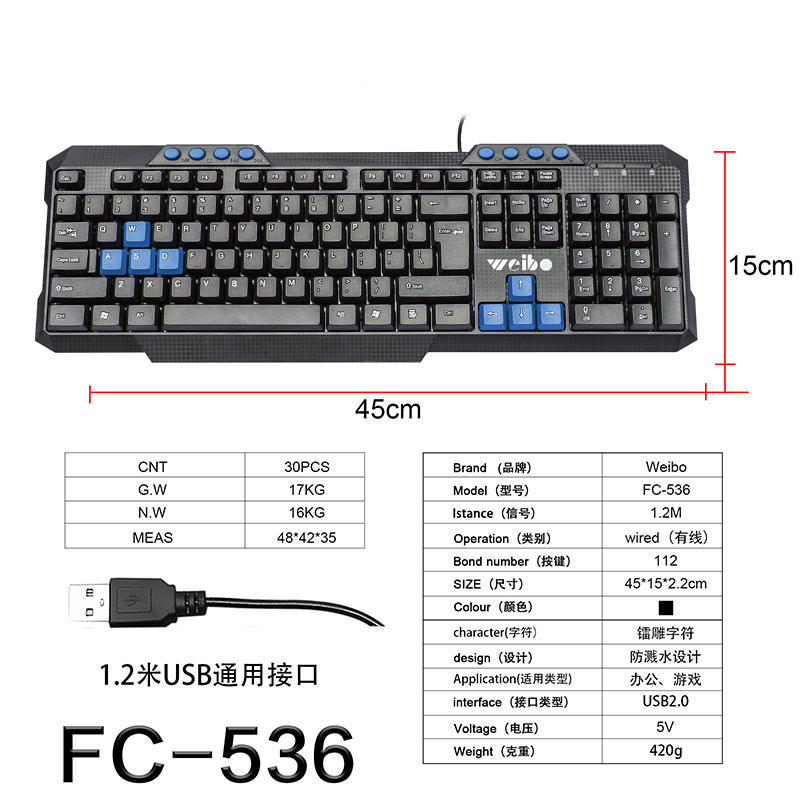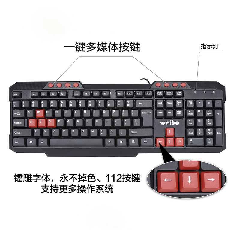 多媒体键盘 伟博weibo 有线防水防尘键盘 商务办公家用 现货销售
