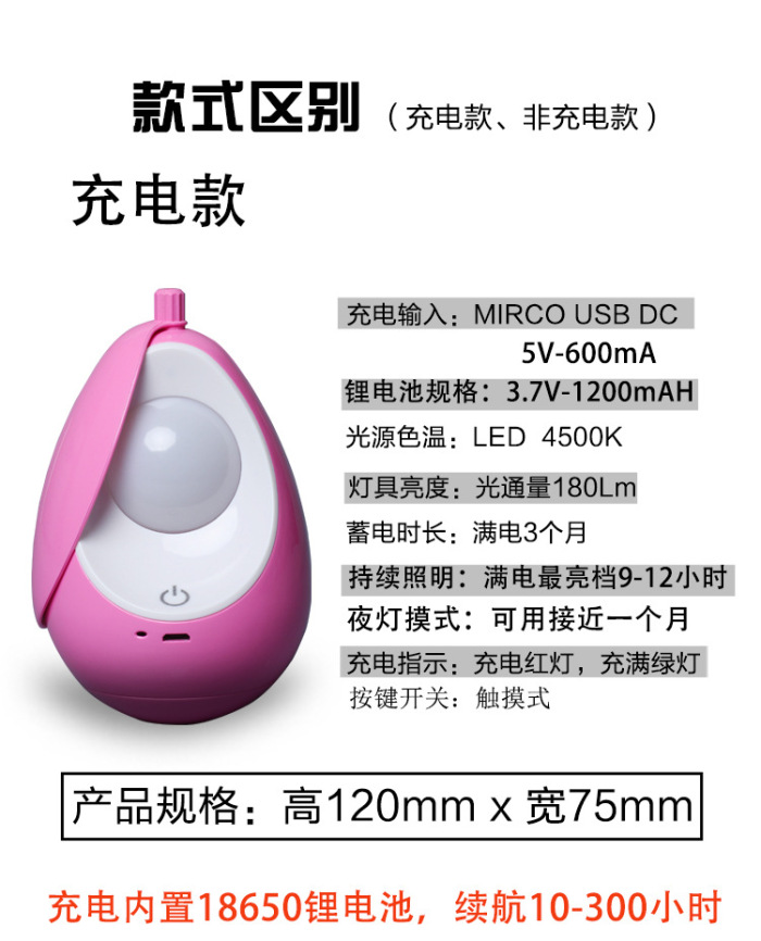 外贸专供led创意小夜灯充电床头卧室育婴儿喂奶神器节能灯