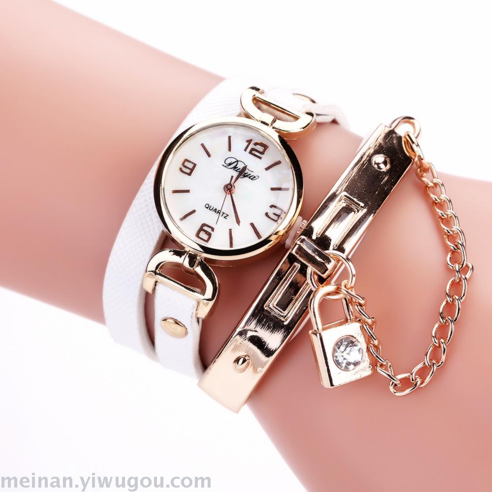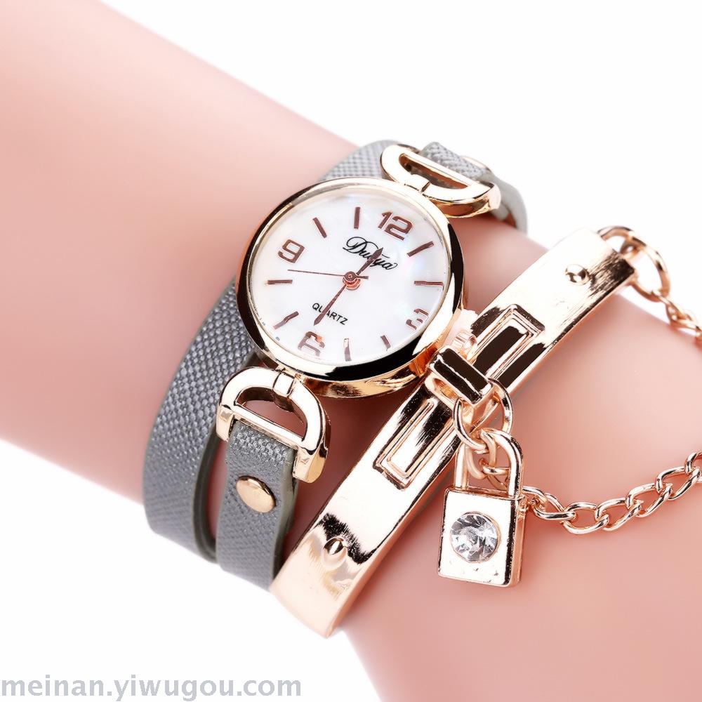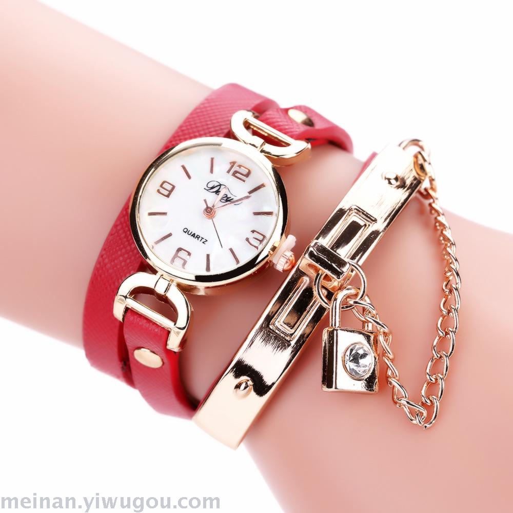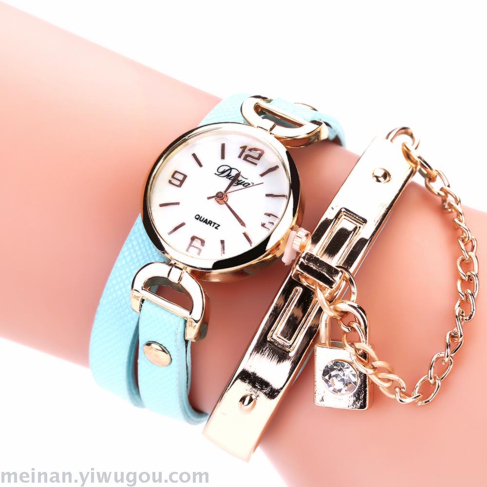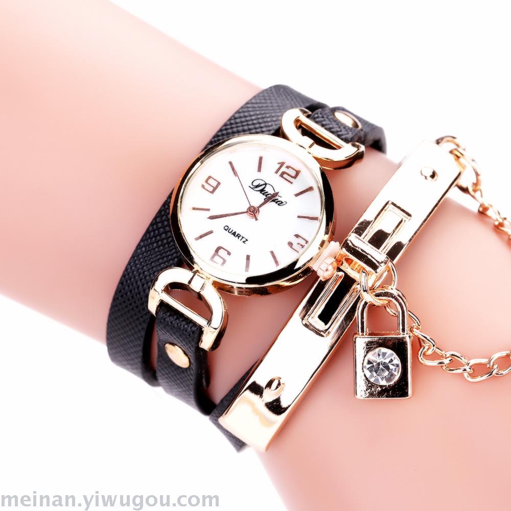 链条带锁潮表女款PU皮休闲手表长带女表