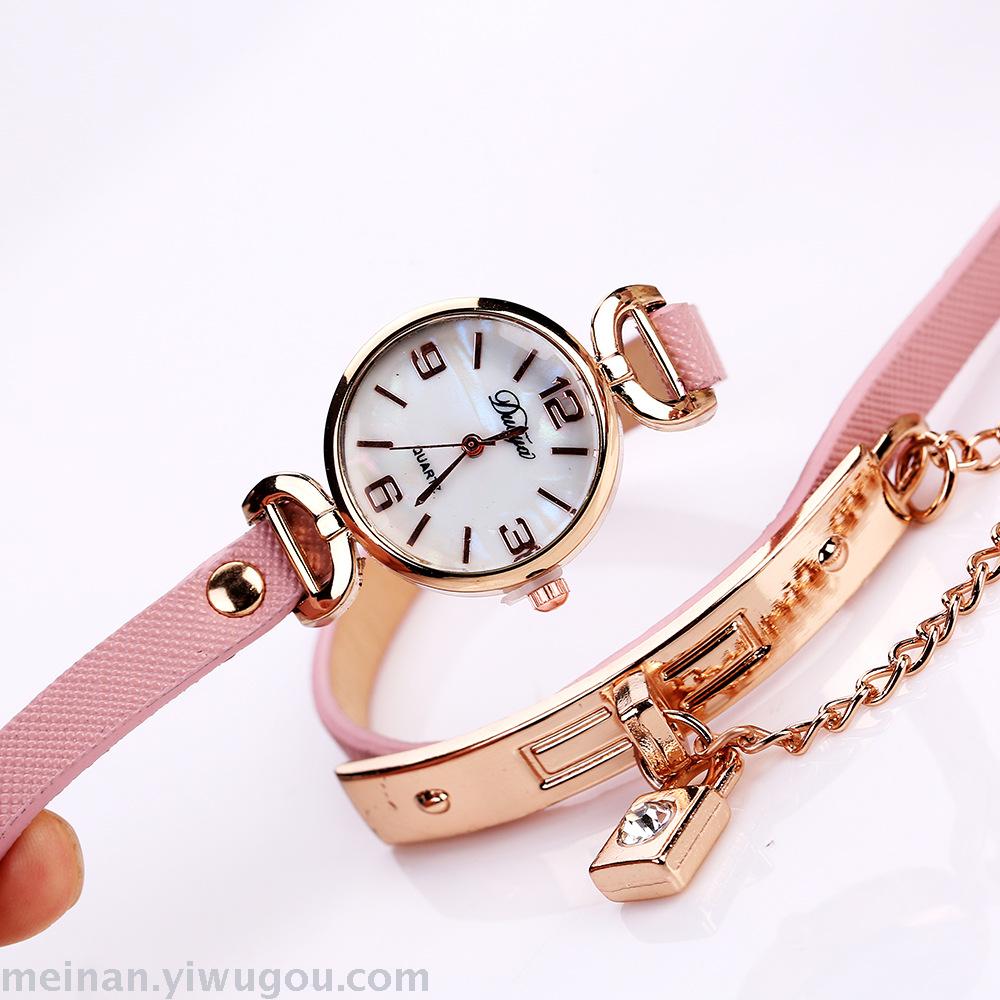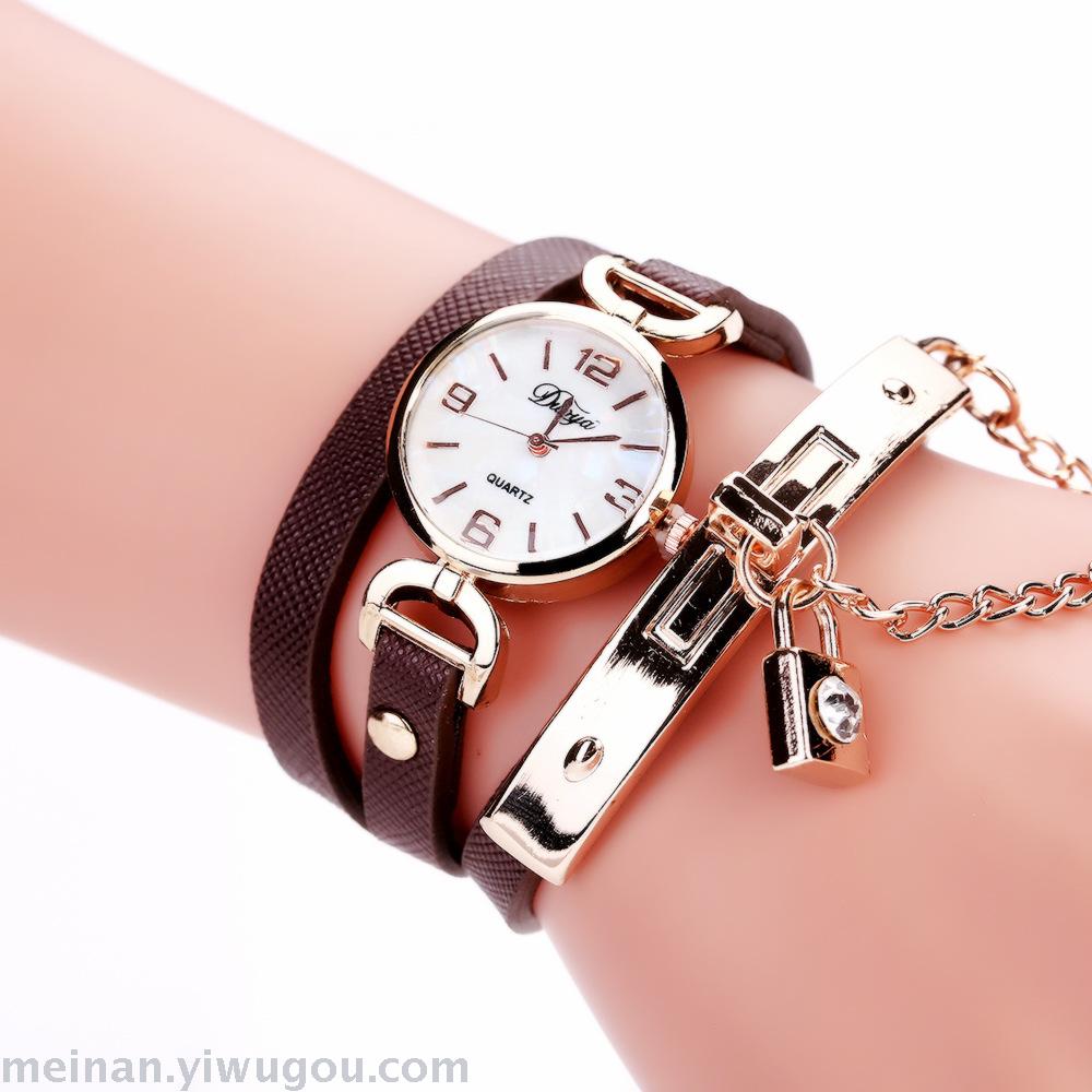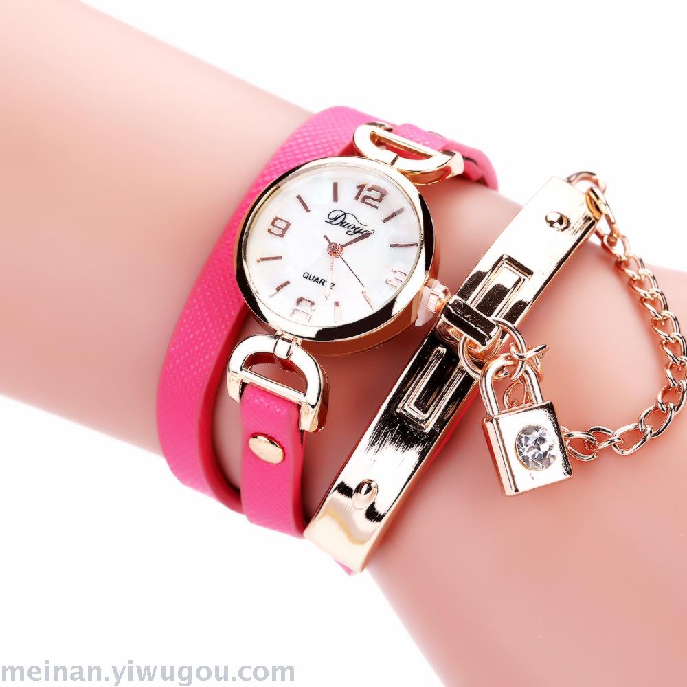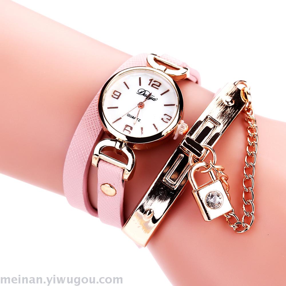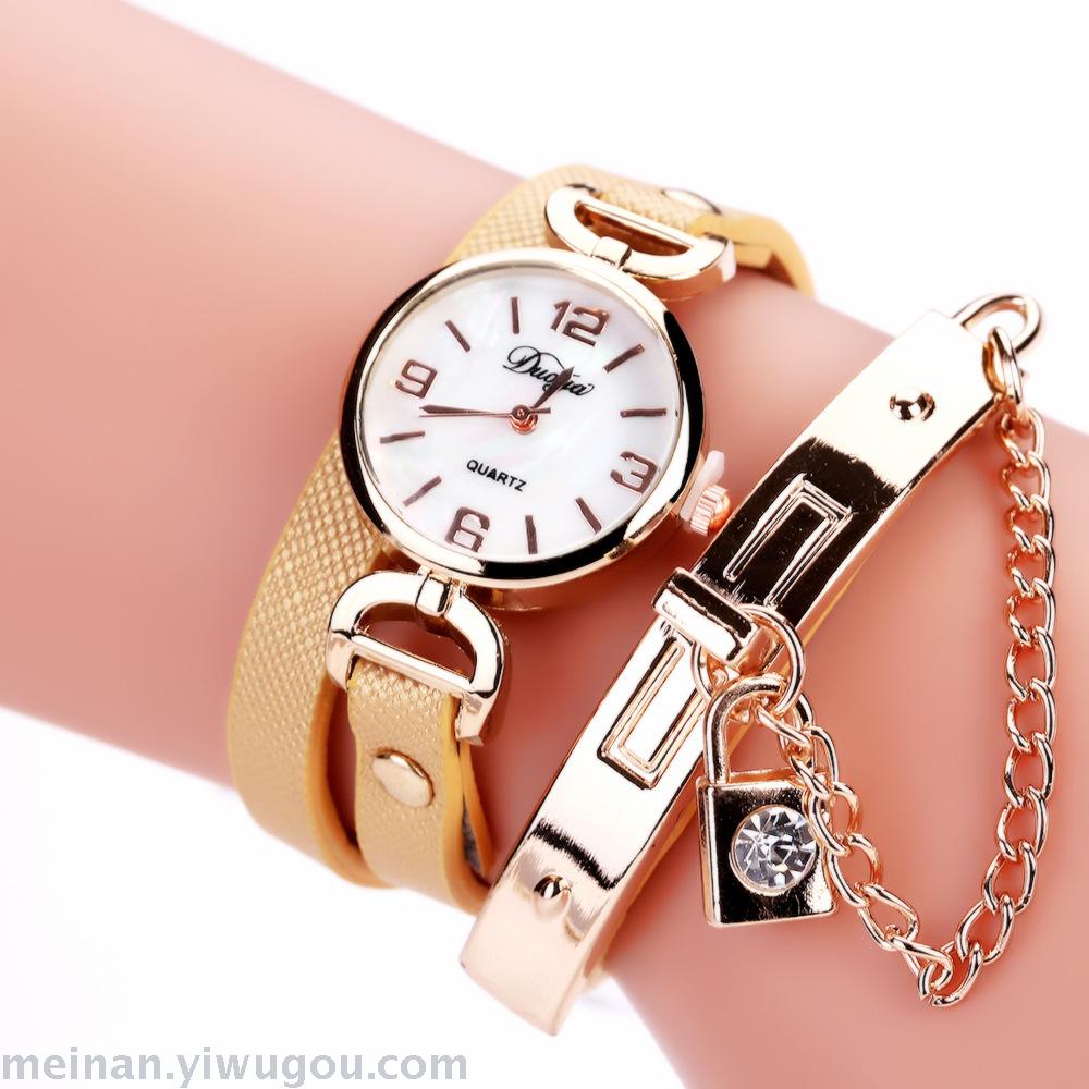 链条带锁潮表女款PU皮休闲手表长带女表