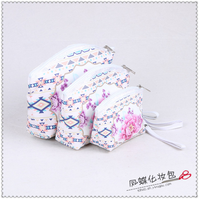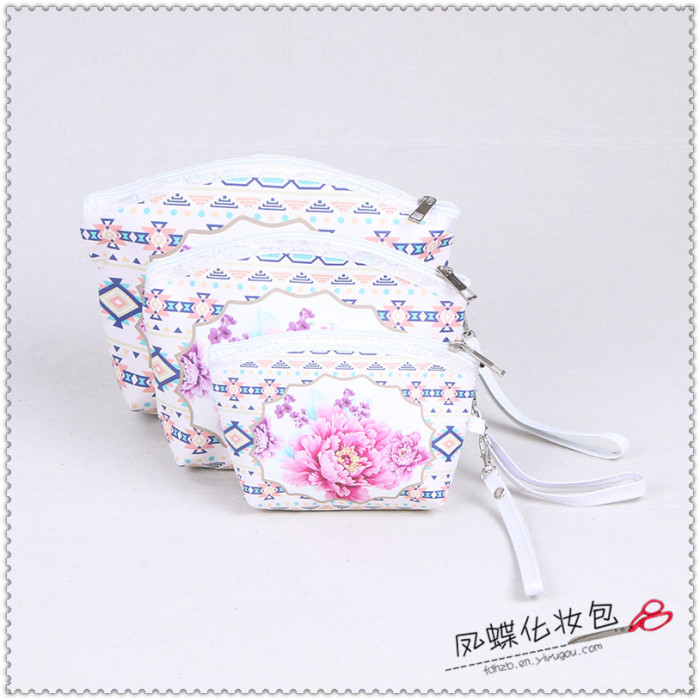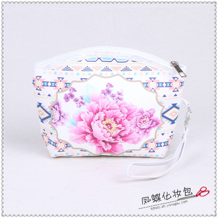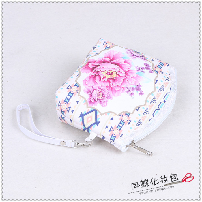 田园风牡丹花朵便携大中小随身化妆包整理包