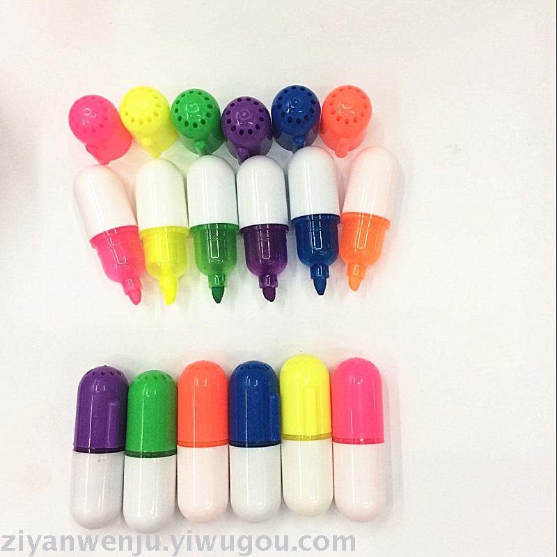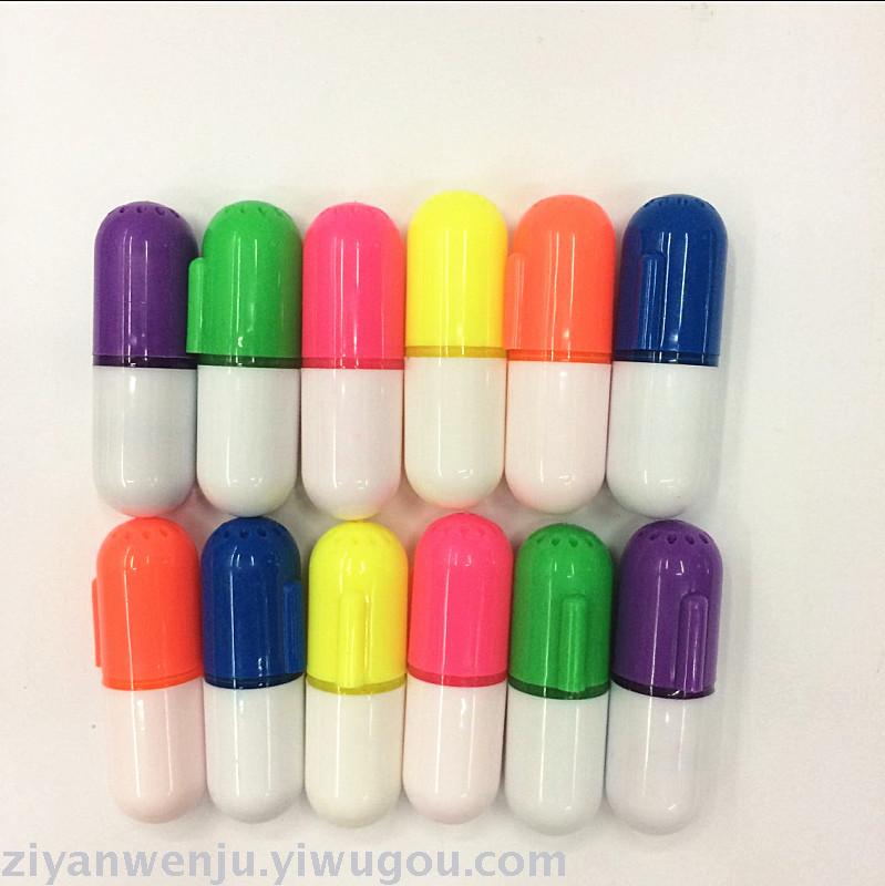 此款是药丸荧光笔,形状像药丸,颜色鲜艳,书写流畅,采用全新材料,无毒环保,质量无忧,360瓶每箱,欢迎定购!