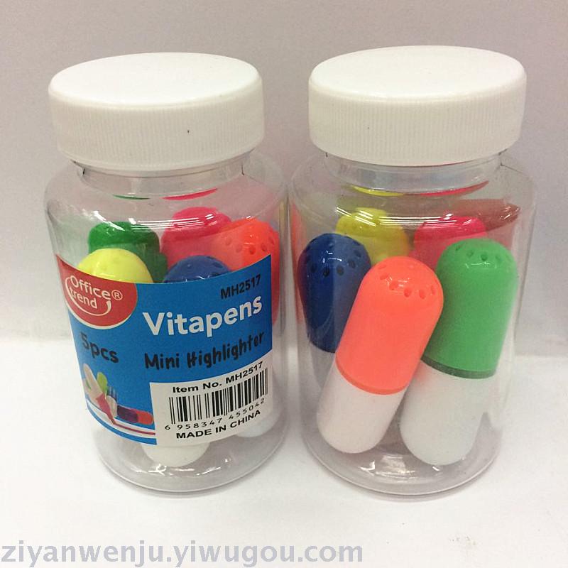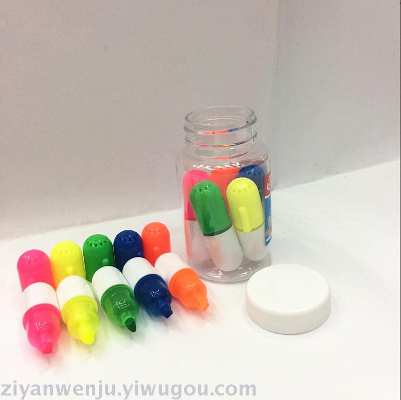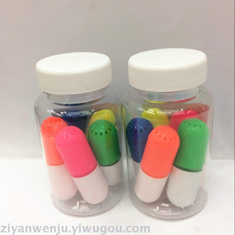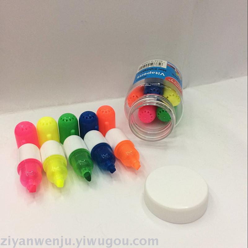 药丸荧光笔 迷你小荧光笔 药瓶5支装